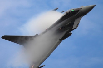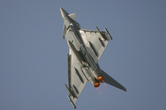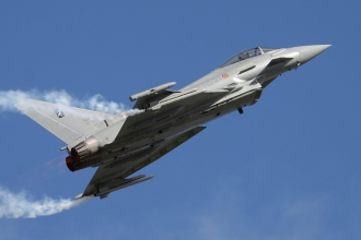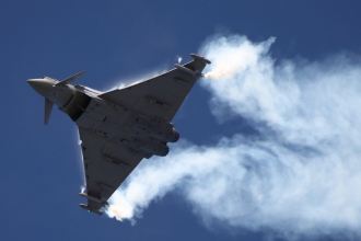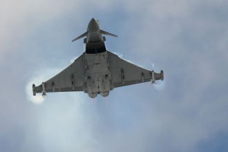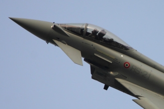 Aeronautica Militare zaprezentowała w powietrzu jeszcze jeden samolot. Tifone, włoski Eurofighter Typhoon, zaprezentował niezwykle dynamiczny pokaz ukazujący możliwości myśliwca, w którym pojawiły się smugacze, zrzut paliwa, a także spektakularne lądowanie wywrotem.
