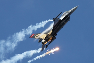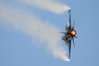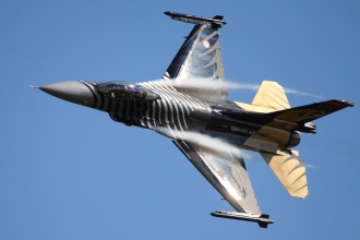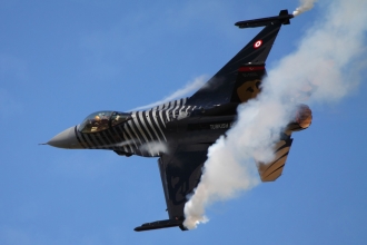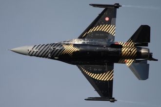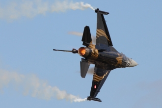 Równie dynamiczny pokaz, a dla wielu najlepszy, dał kapitan pilot Fatih Batmaz z tureckiego zespołu Soloturk latającego na F-16 C Block-40. Jak podaje zespół, przeciążenia w trakcie pokazu, na jakie wystawiony jest pilot, zawierają się od -3G do +9G.
