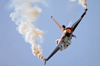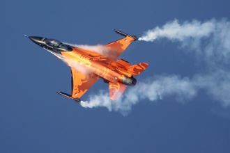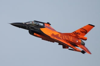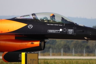 Dopełnieniem solistów wśród "palników" był stały bywalec ostrawskiej imprezy - pomarańczowy lew z Holandii, czyli F16 Demo Team. Przypominamy, iż od tego roku za sterami J-015 zasiada kapitan pilot Stefan "Stitch" Hutten, którego do sezonu przygotowywał inny znakomity demo pilot kapitan Ralph "Sheik" Aarts.
